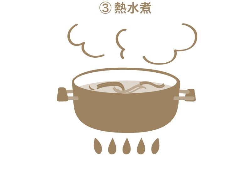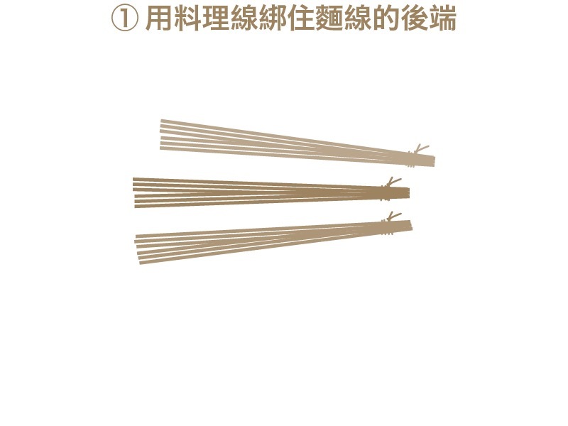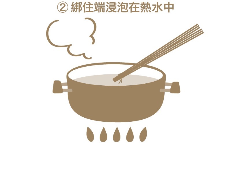 ※除了綁住的那端,為了避免麵線黏在一起,適時地使用筷子攪拌麵線。
