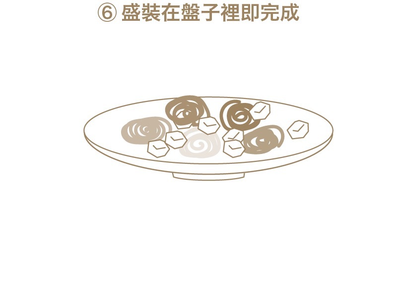 ⑤將煮至口感偏硬的麵線盛盤,上面放上步驟3完成的醬料即完成