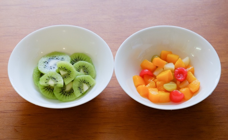 ※黃桃、櫻桃、奇異果、葡萄、橘子等。也可以用水果罐頭。