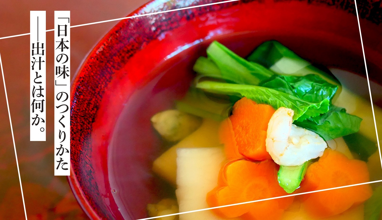 日本料理的「高湯」等於是中華料理的湯頭,在西洋料理中稱為Bouillon(法語)。「湯」看起來類似相同但卻是完全不一樣的料理方式。而相同之處都是左右料理味道的基本元素。換句話說,「高湯」是凝聚日本料理的基礎。日本「高湯」的作法與中華料理跟西洋料理的最大不同點在於「簡單」。細火慢熬結合各種食材熬出多重風味的中華湯頭和西洋Bouillon相比,日本「高湯」利用食材,只需花少許時間就能熬煮出來美味的高湯。但同時在食材的製作,花費許多時間與功夫。「高湯」中經常使用的鰹魚片,製作到完成約需花費半年以上時間。昆布則需要2年以上時間。這些食材所熬煮出來的鮮味,就是日本「高湯」。