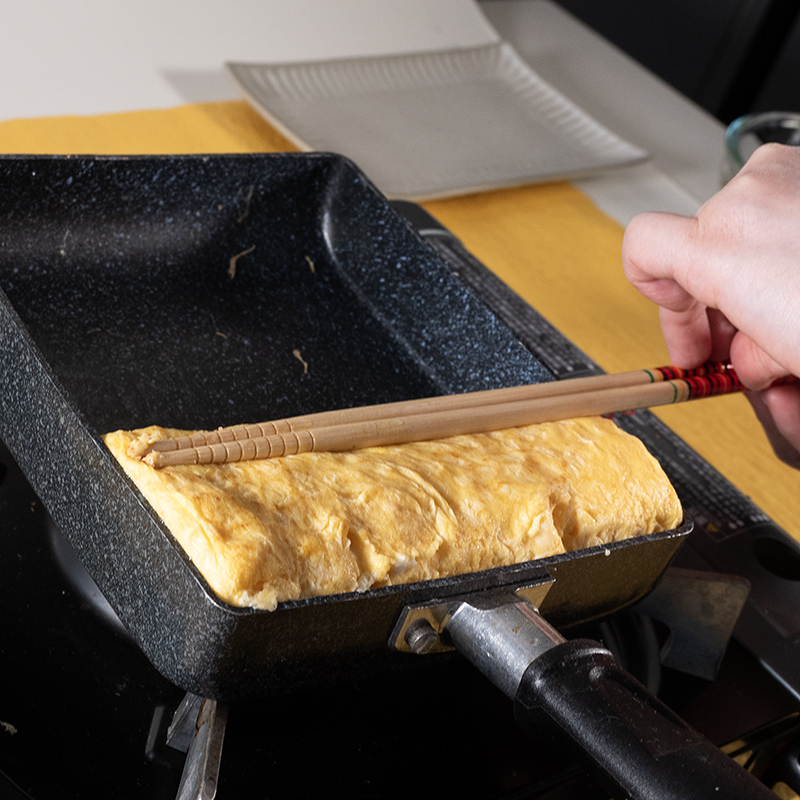 不斷加入蛋液且慢慢捲起,並適當整理形狀。