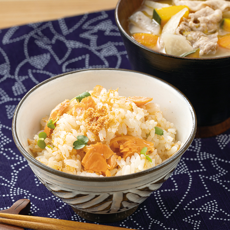 鮭魚鬆放入柳葉魚卵增加口感,再加以明太子風味調味,搭配白飯一同享用,好吃到一口接一口停不下來。 無論是盛在熱呼呼的飯上,或是做成飯糰或炒飯、當作便當配菜等都合適。