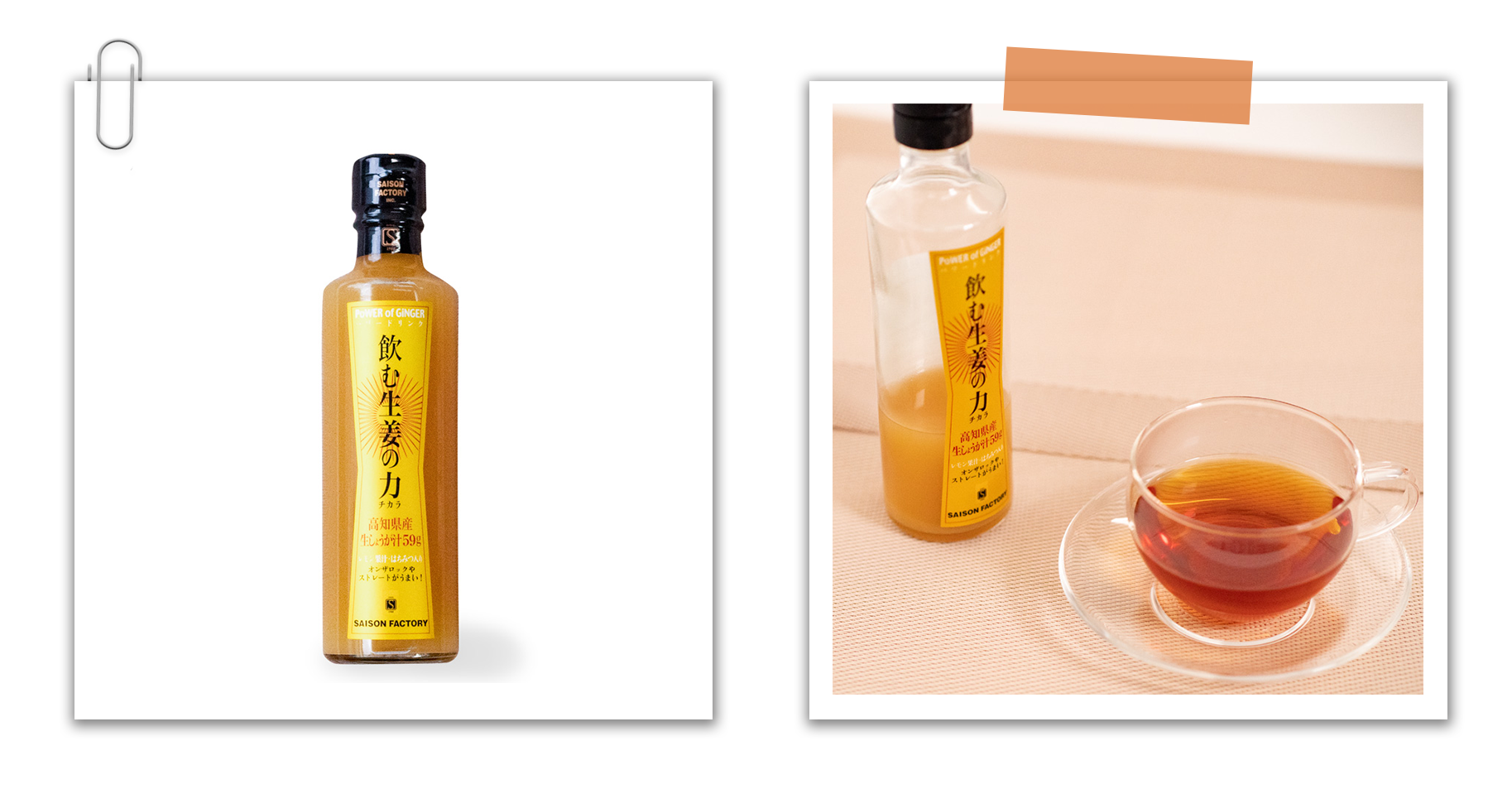 飲用時鼻子裡瞬間充滿檸檬香味,喝起來味道非常爽口! 除了生薑以外還有蜂蜜和檸檬。加冰塊直接享用,或是加入氣泡水,變成薑汁汽水,也可以加入熱紅茶或熱湯。