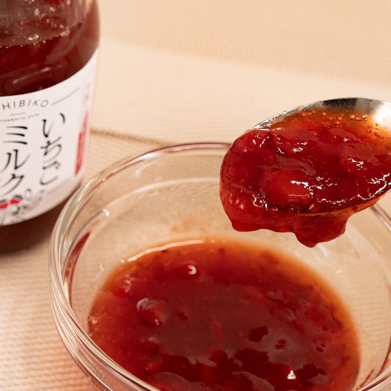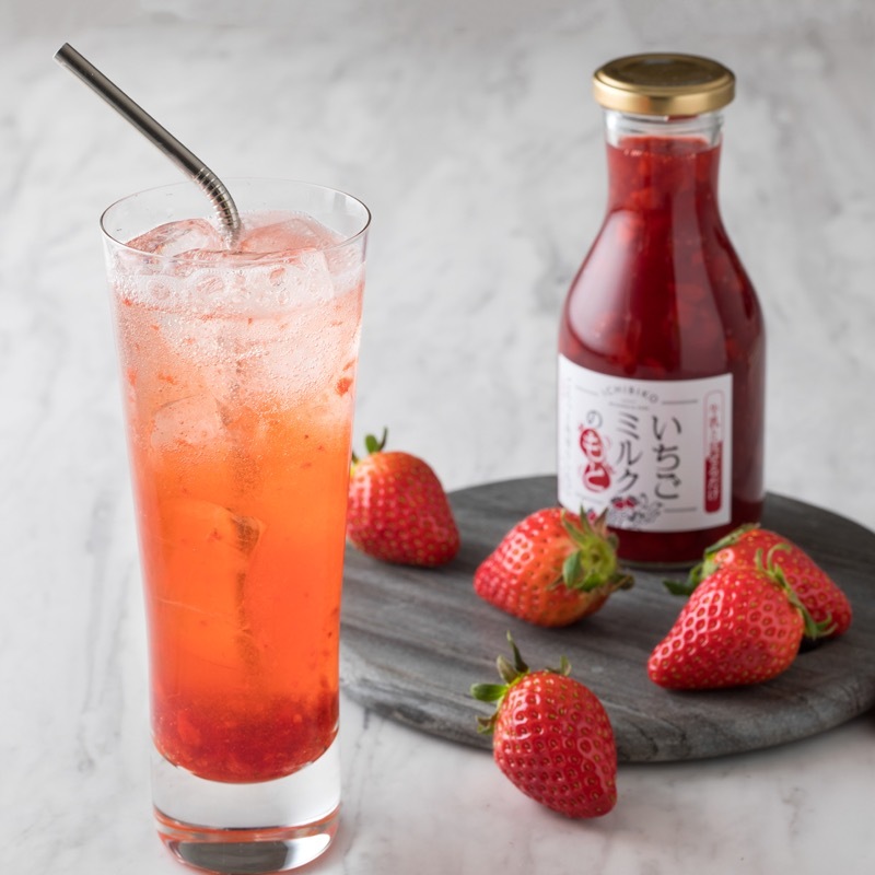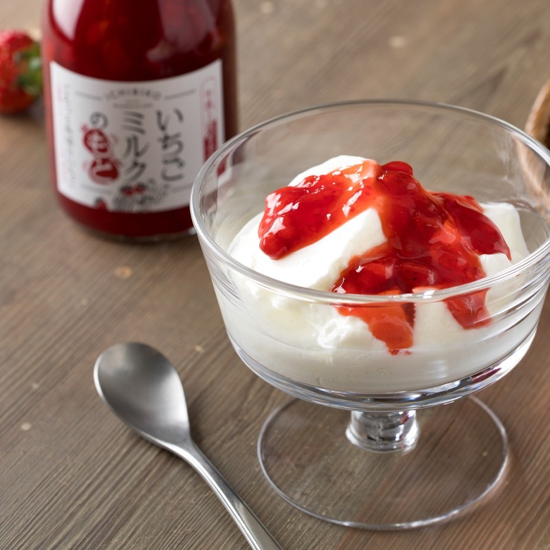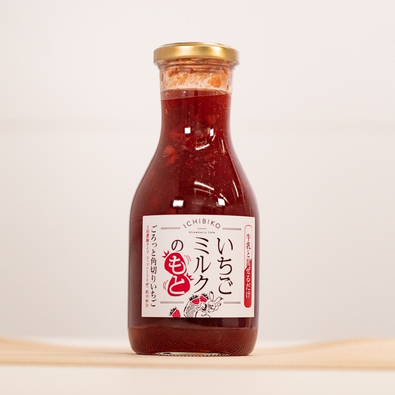 為了讓喜愛的客人也能夠在家享受到人氣商品的「草莓牛奶」,研發出以砂糖醃製切丁草莓所特製的瓶裝草莓果粒醬。