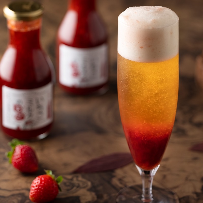 <草莓啤酒(1人份)>啤酒(無酒精也可以) 200ml、莓果粒醬 20~60g