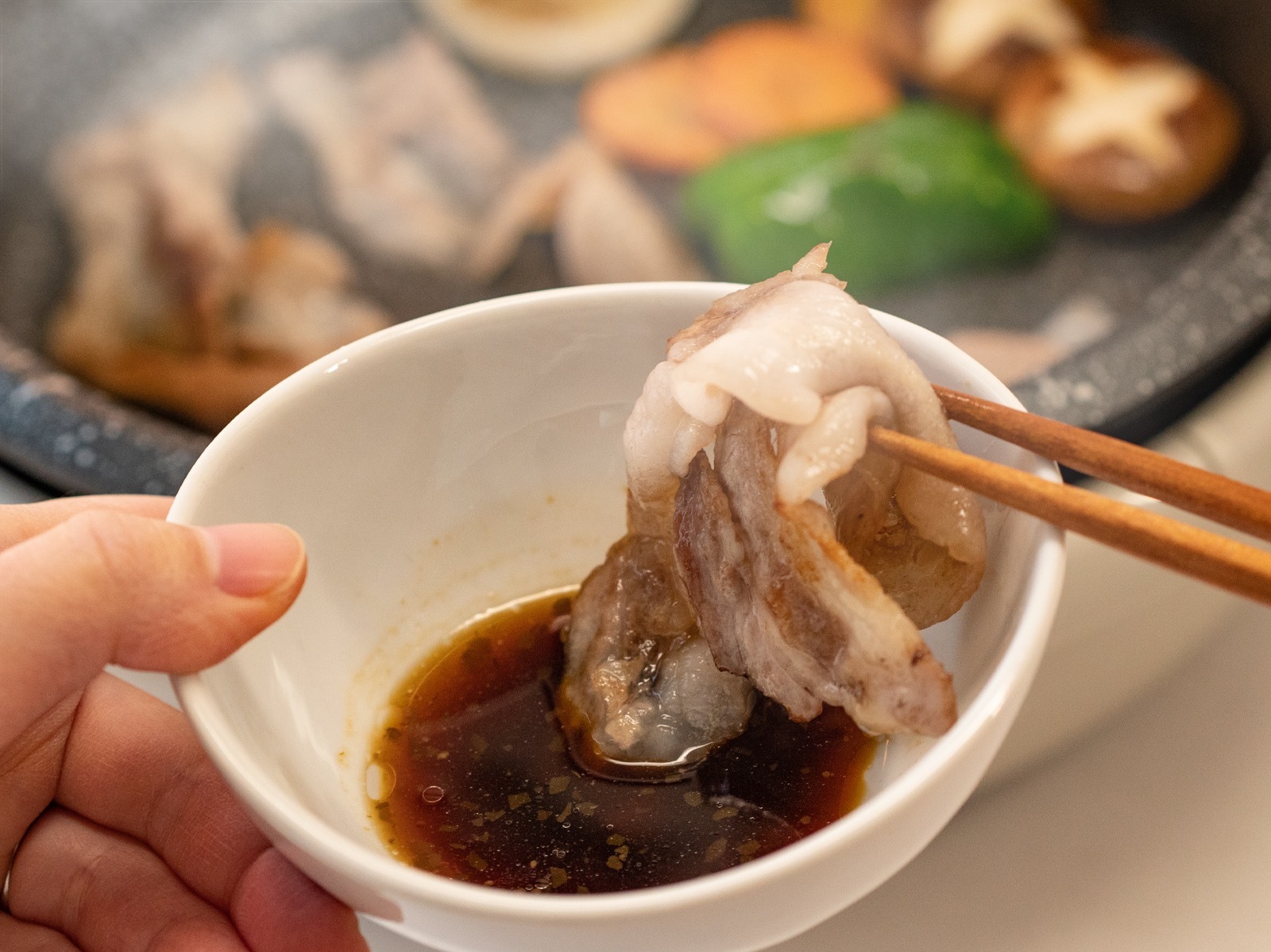 以前吃烤肉時的沾醬口味總是比較重一點,導致於無論是什麼食材都會變成「烤肉醬」的味道,感覺像是在吃醬料(笑)。當然也很好吃,但「青辣椒醬油露」卻是可以突顯出各種食材原有的味道,萬能到讓我非常吃驚呢。