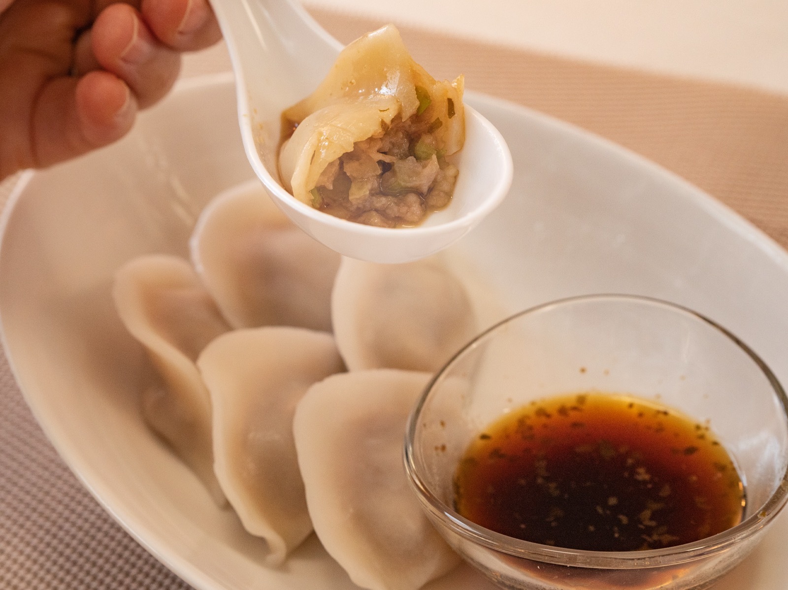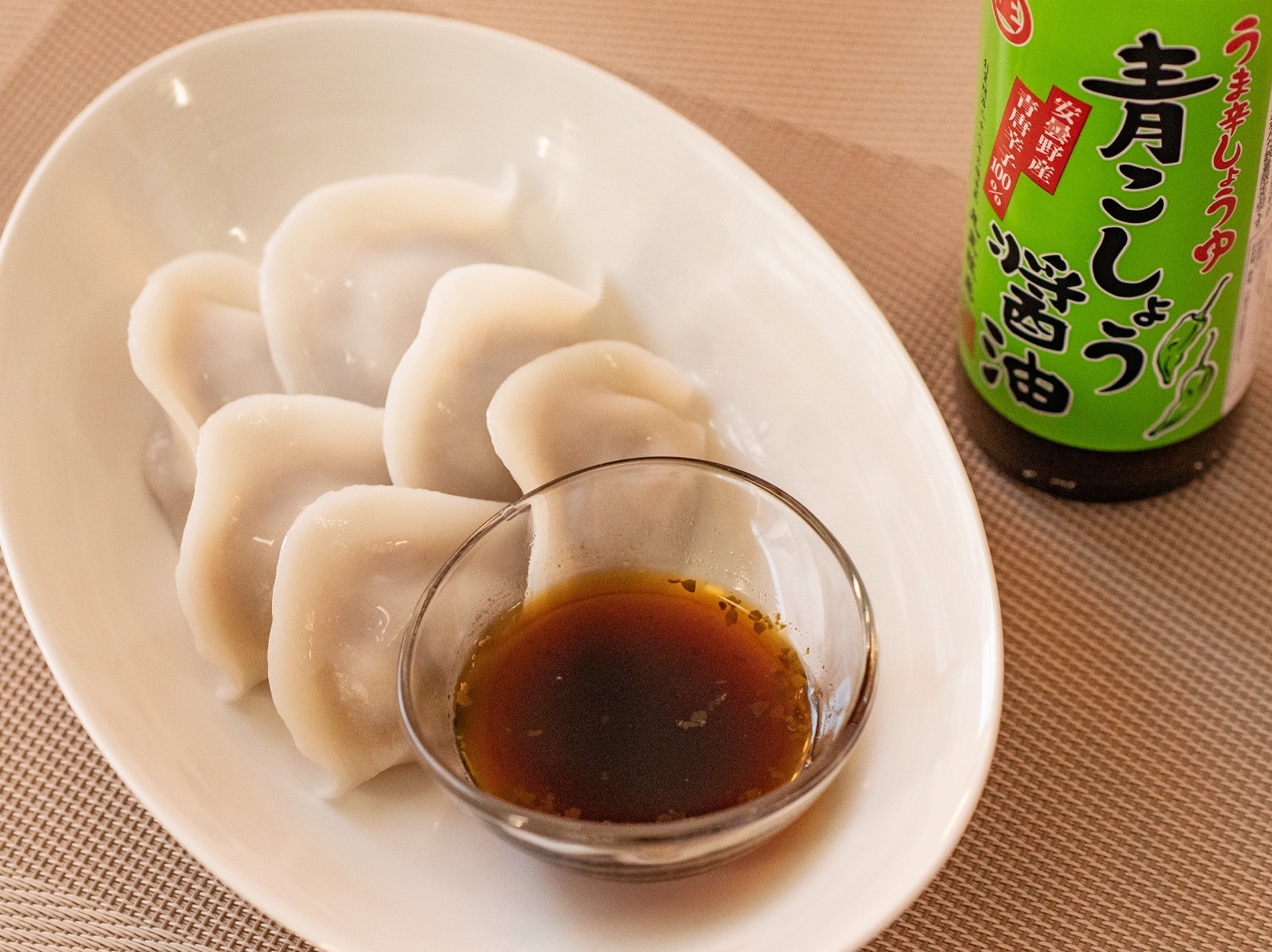 喔喔,很搭耶。Q彈的外皮和滿滿肉汁的內餡搭配上清爽和香氣十足的青辣椒醬油露非常好吃!台灣水餃的沾醬雖然也會加辣油,但青辣椒的微辣風味又不太一樣呢。辣味不會殘留在口中,吃起來很順口。