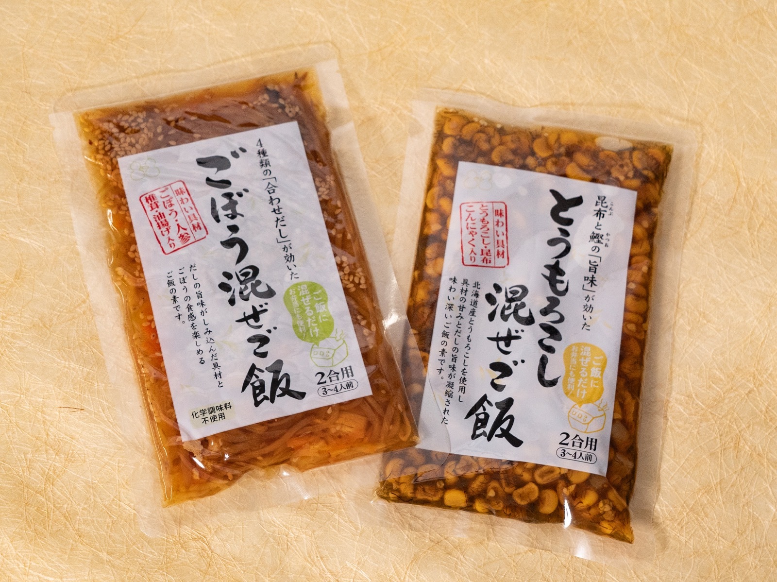 嚴選食材搭配著高湯調理,讓您能輕鬆享受一碗美味佳餚。 這次要介紹兩款人氣商品「玉米拌飯調理包」和「牛蒡拌飯調理包」。