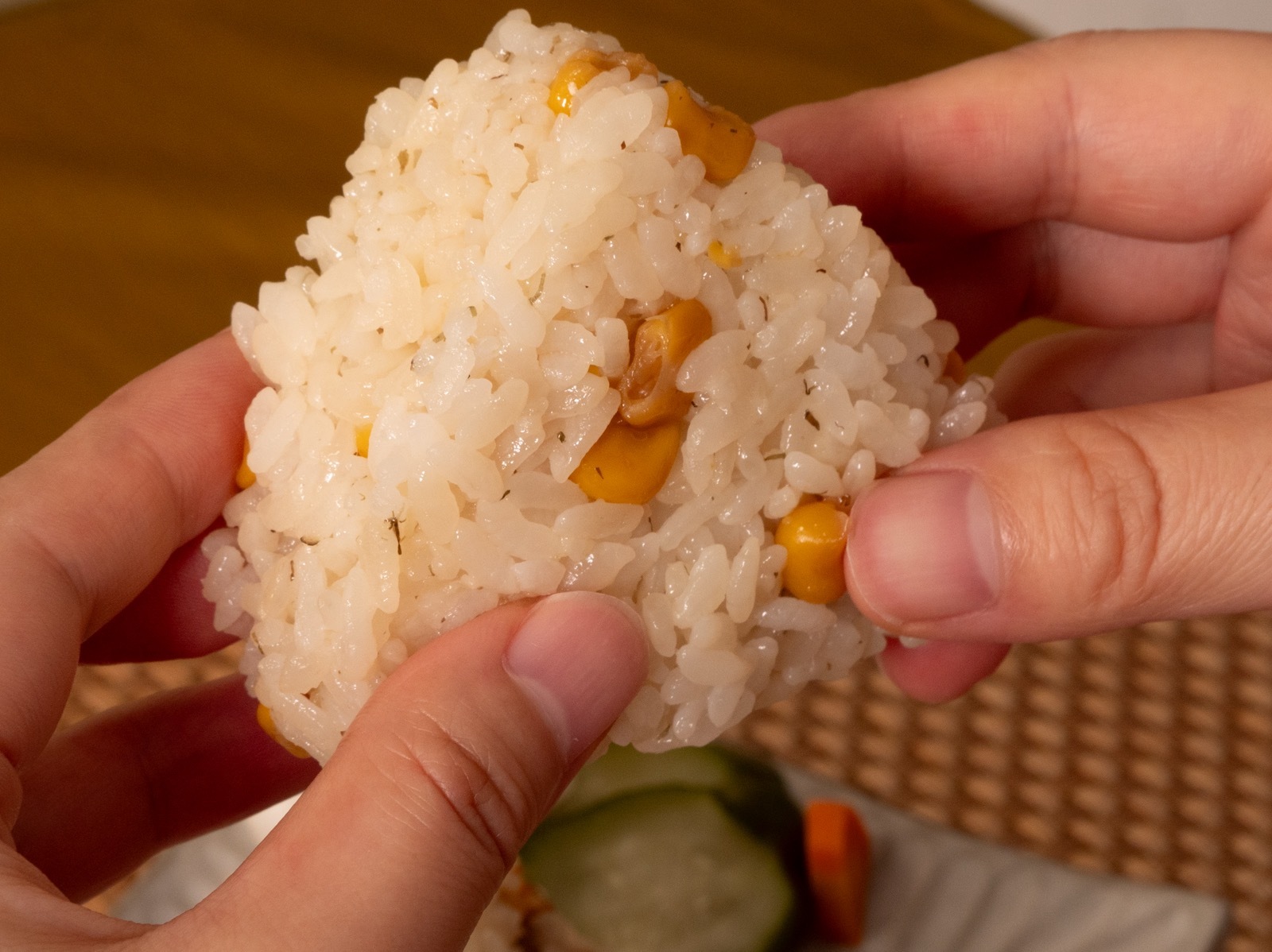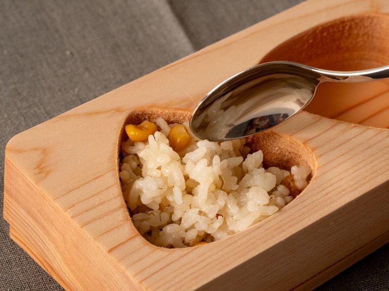 吃一口馬上感覺到玉米的香甜口感,同時米飯滲入著昆布的鮮美高湯,非常香甜的味道,有種幸福的感覺。