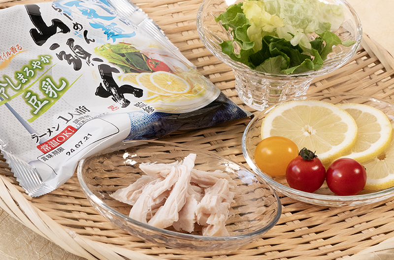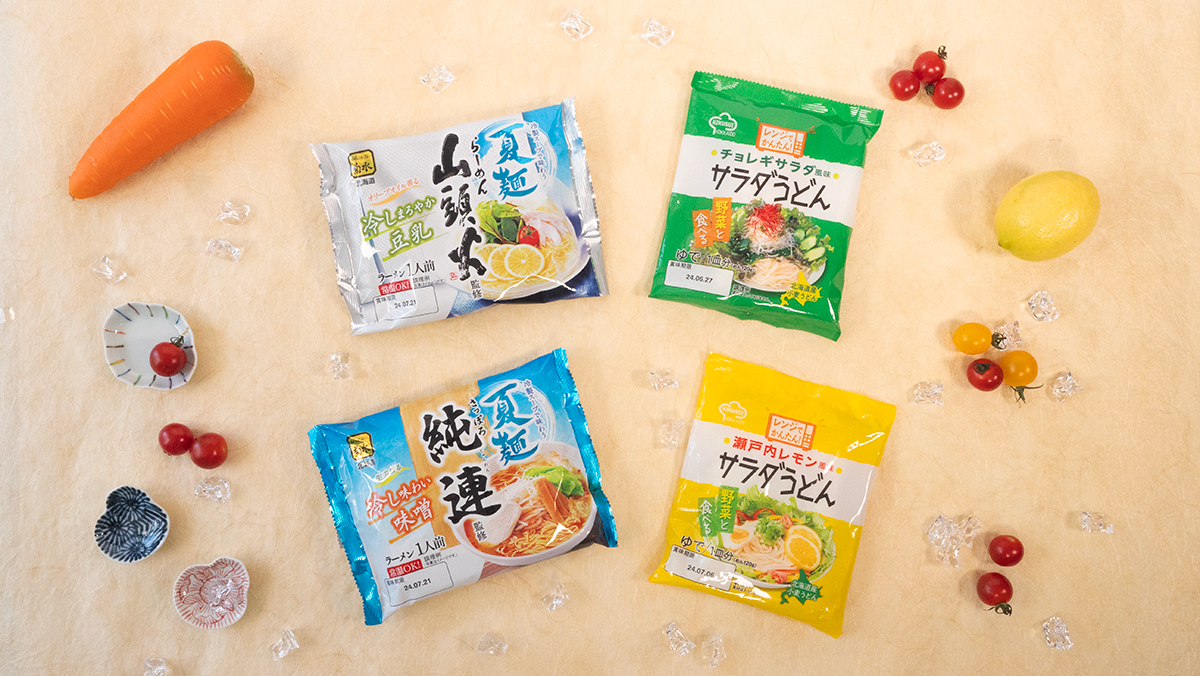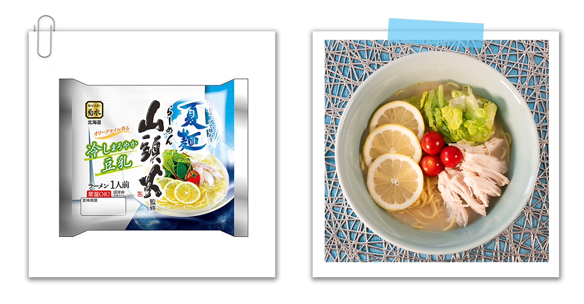由札幌人氣拉麵店「拉麵山頭火」監修的商品。湯汁可以直接用冷水泡開,是一款適合在炎熱夏天食用的原創冷麵。