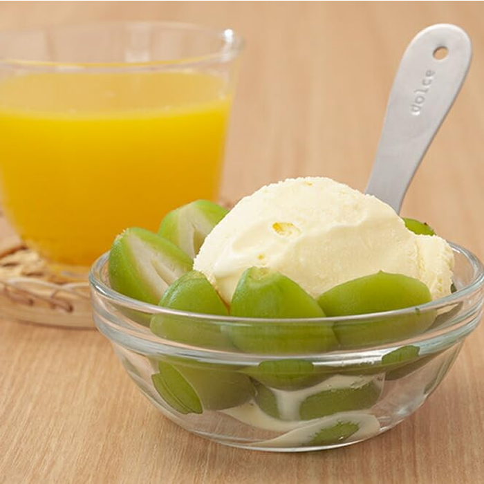 使用福島縣北部名產「桃」在成長過程中間引下的小桃製作。將青嫩的小桃連同果核一同細火蜜煮至柔軟入味,整顆都能入口,是外型可愛、風味獨特的和風甜點。