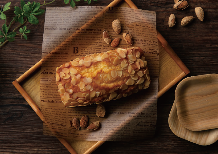 將風味濃郁,烘烤香氣十足的加州產杏仁切片,均勻撒在蛋糕表面,烘焙出香氣四溢,濕潤蓬鬆的美味口感。