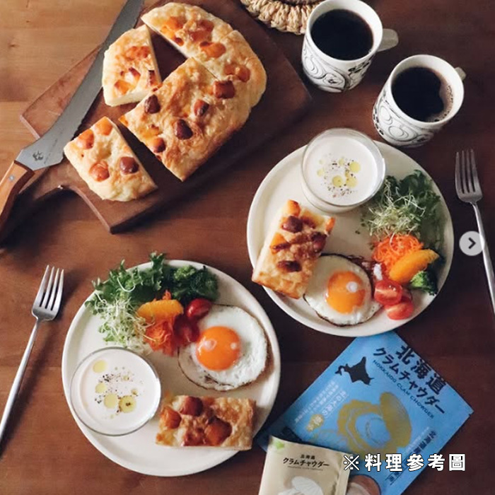 扇貝的美味與牛奶、起司的絕妙搭配。將商品拆封後放入杯中,倒入150ml的熱水或是熱牛奶,仔細攪拌15秒後即可享用
