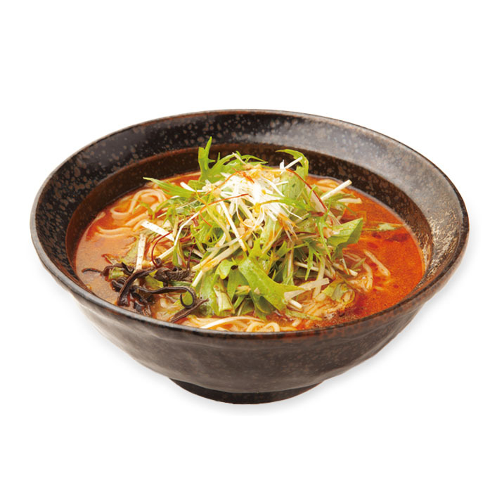 使用登米老字號釀造廠「ヤマカノ醸造」株式會社的仙台味噌,融合濃郁深厚的風味和柔順的美味,再加上以辣椒為基調的回味辛辣湯底。採用濕潤有嚼勁的中細麵條,與美味的辛辣湯底形成絕妙的和諧。請盡情享受這樣一碗美味。