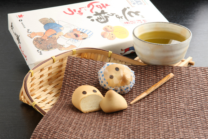 以山陰地區(島根、鳥取)代表性的「撈泥鰍舞」中的瓢子面具為靈感,設計出可愛又富地方特色的心型饅頭。