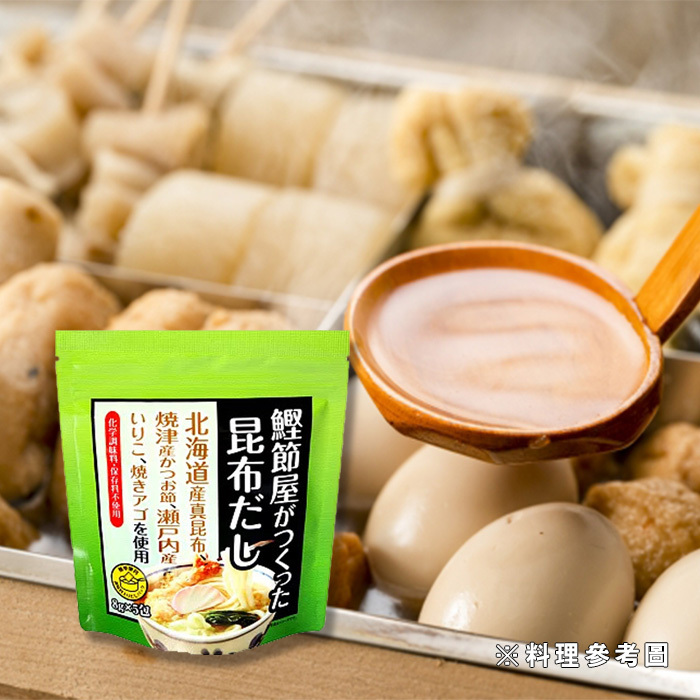 使用燒津產鰹魚片、北海道利尻昆布、瀨戶內海沙丁魚與炭火香氣濃郁的烤下巴,
