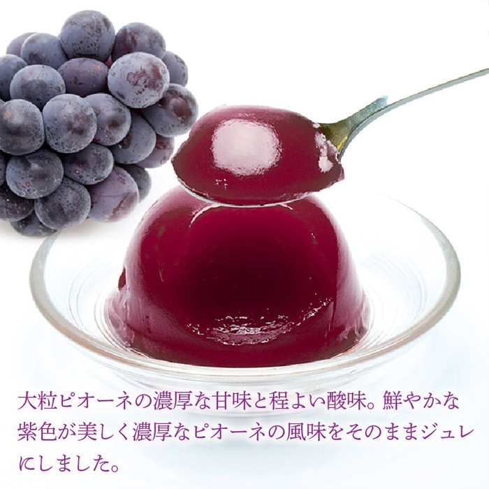 嚴選鏡野地區人氣 No.1 大粒品種「Pione 巨峰」,甜度飽滿、酸甜平衡佳。濃縮其深紫色澤與濃郁果味,呈現多汁又香氣集中的華麗葡萄果凍。